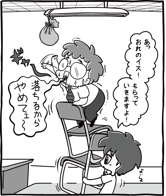 ダメダメ。太郎くんは、天井にひっかかっていた袋を取るのを手伝ってくれたからあげるんだ。花子さんには絶対あげないからね。