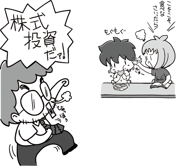 二人とも何ひそひそしゃべってるの? 今日の話は重要だからよく聞かないといけないよ。今日の話は、ずばり、「株式投資」だ。