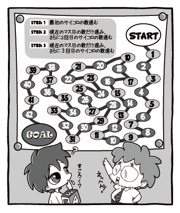ちょっとひどくない! しかも、Step 3も、今いるマス目分だけ進んで、それからサイコロで出た目だけ進むって事。