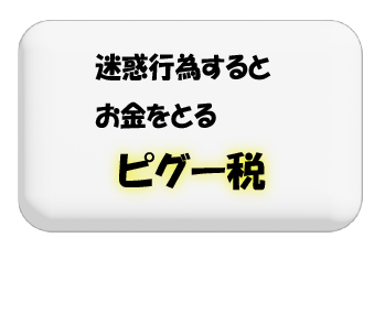 いろいろあるけど、ここでは2種類説明するよ。一つ目は、迷惑をかける行為をするとお金をとる方法だ。経済学で、ピグー税と言われる方法だ。