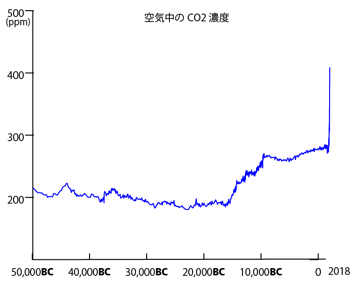 さすがだわ、花子さん😊 それでは、CO2の量の変化の図をみせるわね。