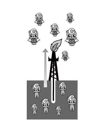 でも、もともと、空気中にいた私たちを元の場所に戻しただけよ。全体として、CO2の量が増えるわけじゃないわ。