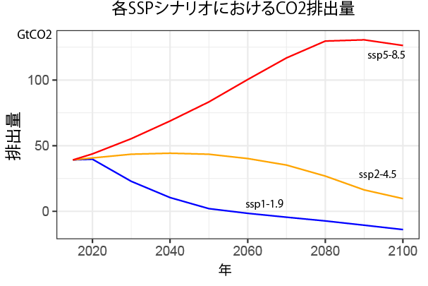 以下のグラフは各sspシナリオにおけるCO2排出量